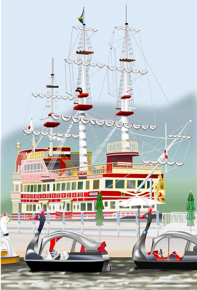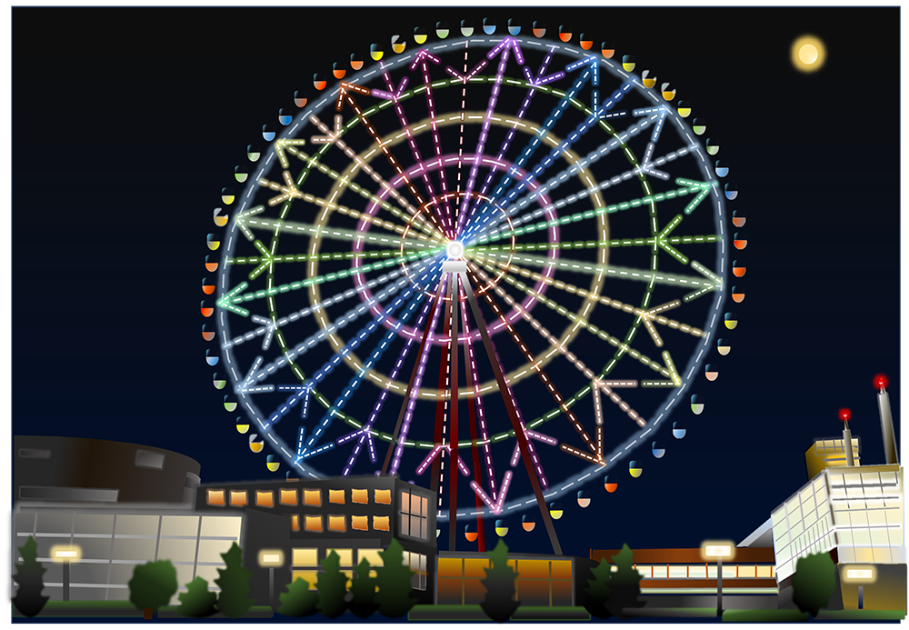 商品券1万円分まず目を引くのは、観覧車の繊細な描き込みです。ゴンドラひとつひとつ丁寧に描かれています。全体の構図もバランスがよくて、観覧車の大きさと空の広がりに魅了されました。