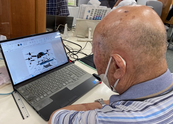 以前ワードでおえかきをされていた生徒さんが 久しぶりにおえかきをしたいということでした。 せっかくなので『おえかきコンテスト』に応募できるように題材をAIと 一緒に考えてみました。 万博で空飛ぶ自動車が話題になったことと 地元のお城を合わせて 空飛ぶ自動車と姫路城を題材にしてみました。
