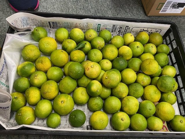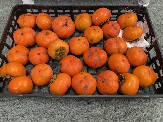 柿やさつまいも、ネギ、ずいきと色々なものが届きます。