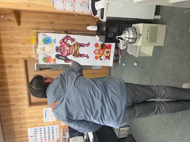 節分にちなんで、教室に現れた鬼たちに向かって、やわらかいボールを投げて得点を競うゲームを楽しんでいます。ボールは6個、何度でも練習OK!期間中の最高得点者には、なんとプレゼントも🎁