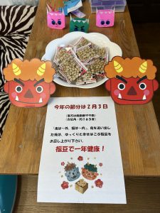 ホエールたつの校では例年通り福豆を準備させていただきました。