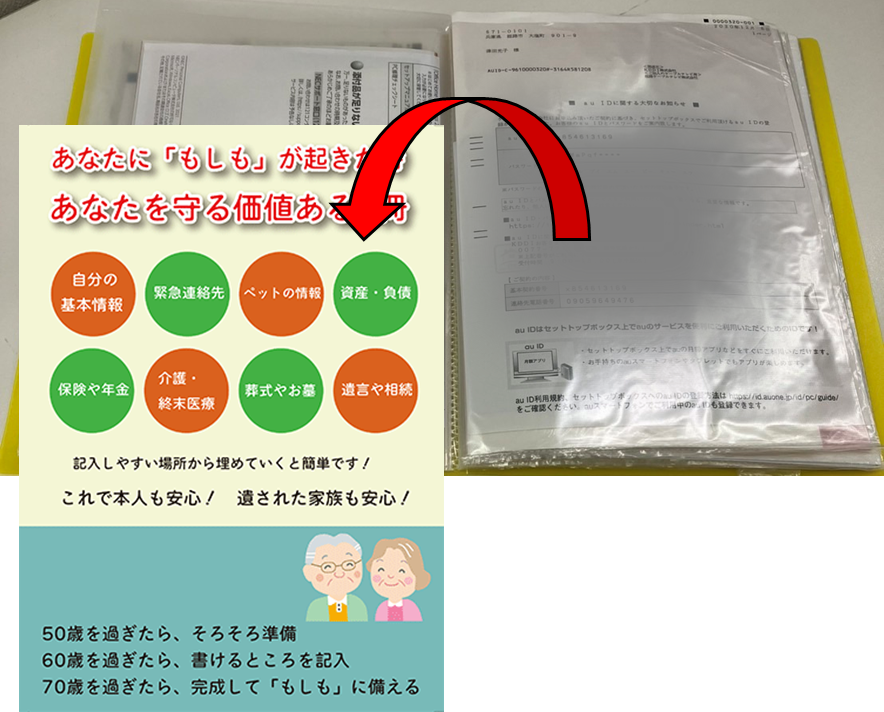 資料を保管しているだけではなくて、何にどのアカウントとパスワードなのかを本に書いておくべきだと思います(;’∀’)